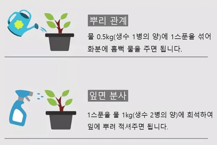 적용 가능 식물 : 다양한 실내 및 실외 원예 식물에 적합