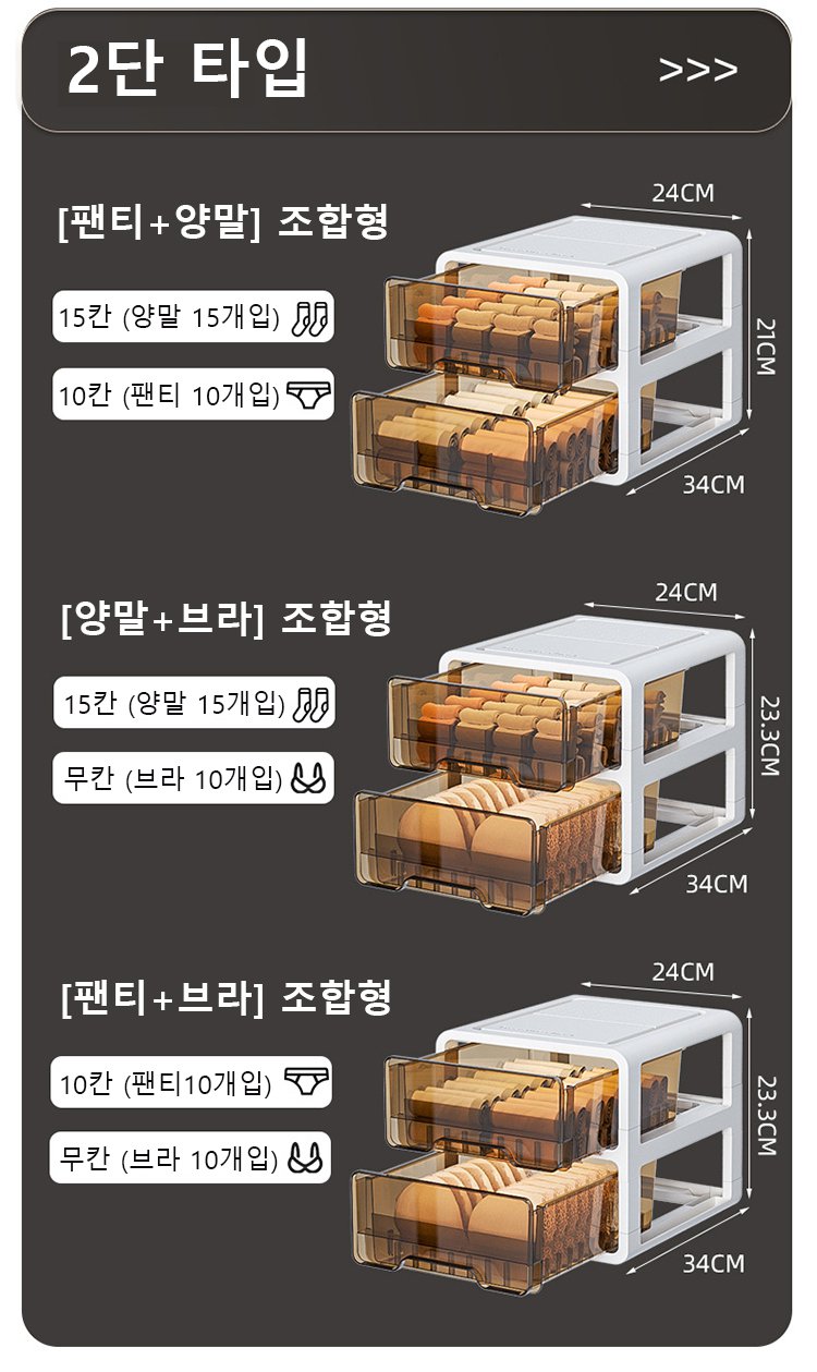 제품 사양 : [브라] 독립 포장, [팬티] 독립 포장, [속옷] 독립 포장, [팬티+속옷] 조합 포장, [양말+속옷] 조합 포장, [팬티+양말] 조합 포장, [브라, 팬티, 속옷] 조합 포장